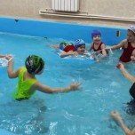 Девочки старших групп со своими мамами участвовали в соревнованиях по волейболу на воде. Достойно за